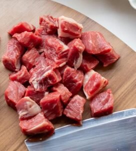 - Heat 1 tablespoon olive oil in a pan over medium heat, and add the diced beef.